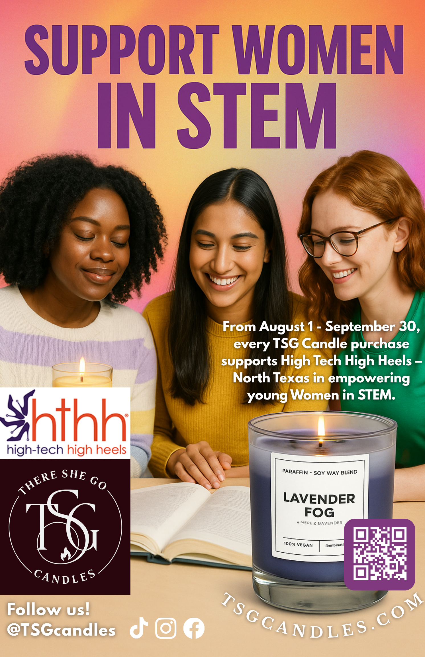 30% of every candle purchase goes directly to High Tech High Heels, funding scholarships and programs that empower the next generation of women in S.T.E.M.